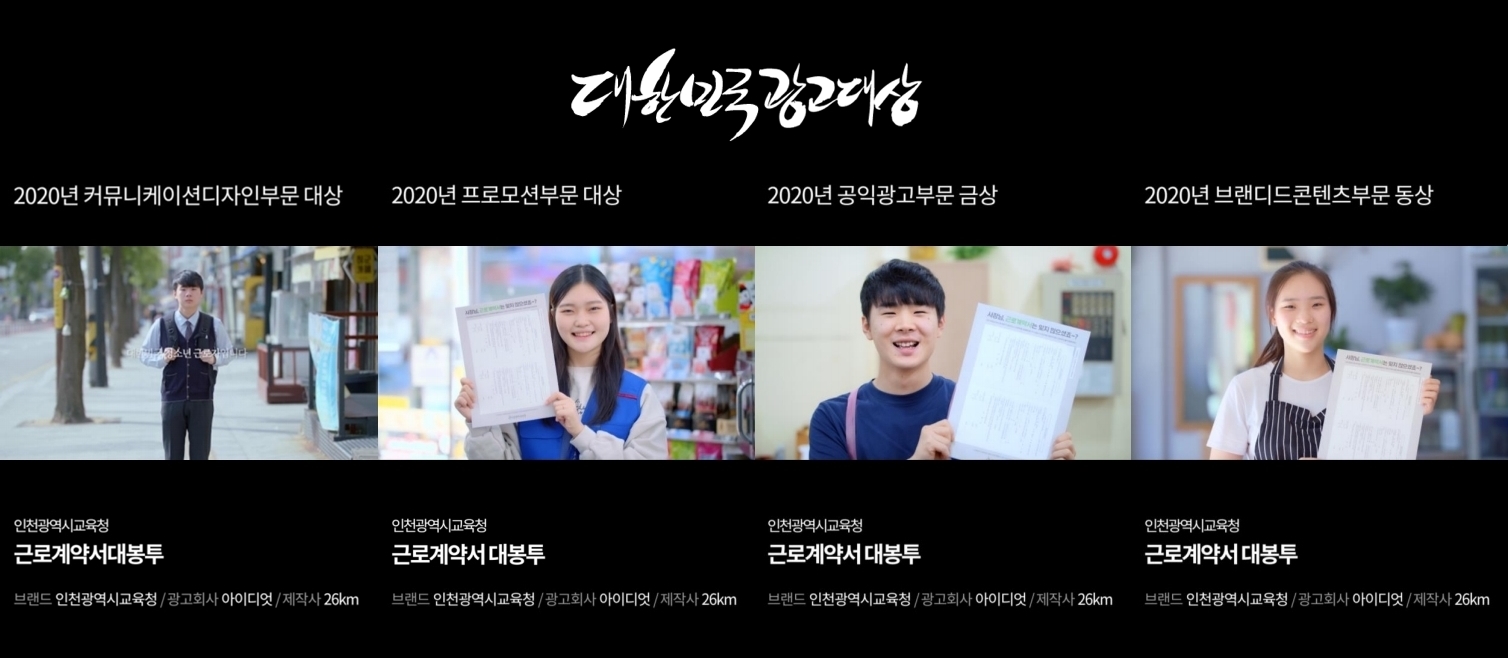 해당 광고는 2020 대한민국 광고대상 4개 부문을 수상하였습니다.
